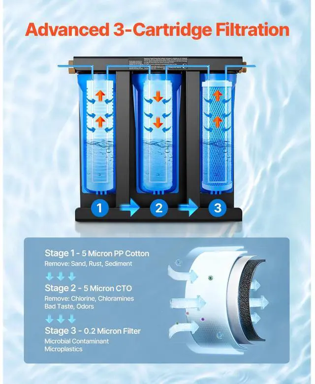 RV Water Filter System 3-Cartridge with Basket for Campers Boats RVs Vans