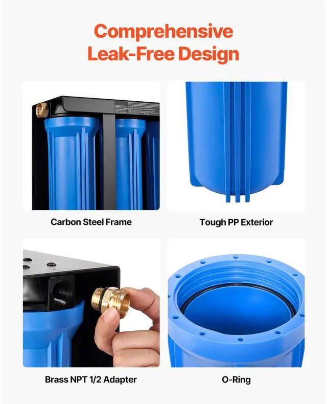 Connector Size: NPT 1/2,Flow Rate: 2.9 GPM,Maximum Pressure per Filter Housing: 3.3 MPa / 480 psi,Operating Water Pressure: 0.14-0.86 MPa / 20-125 psi,Cartridge Lifespan: 7500 Gal (Based on 1-2 ppm Chlorine Test),Housing Material: PP,Item Model Number: PRS-102-LLL-FC,Product Weight: 20.7 lbs / 9.4 kg,Suitable Water Temperature: 40-104 / 4.4-40,Compatible Cartridge Size: 2.5 x 10 in / 64 x 250 mm,Product Dimensions: 14.4 x 5.7 x 14.0 in / 365 x 145 x 355 mm