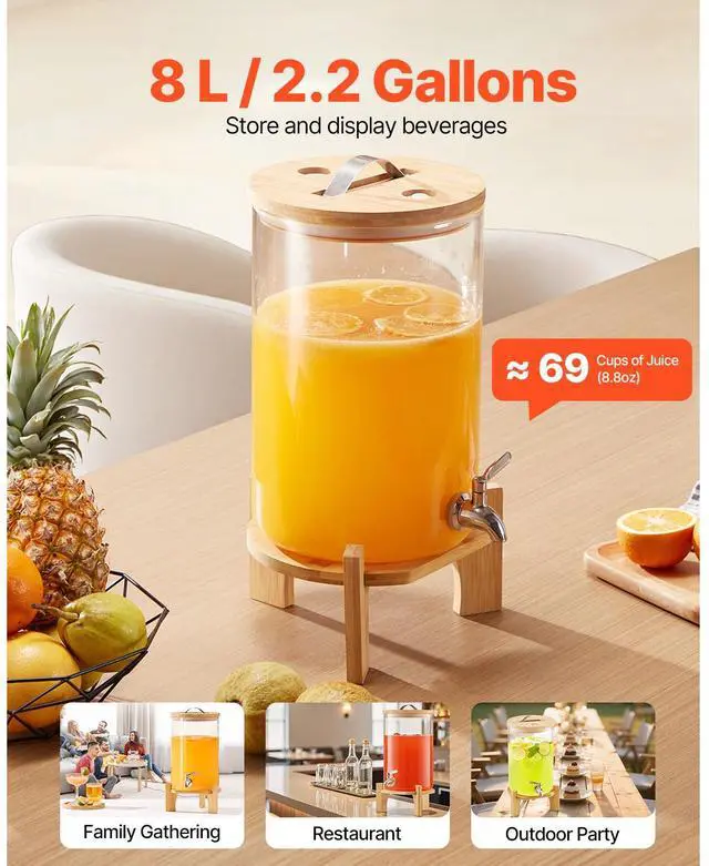 Drink Dispenser 2.2 Gal Beverage Dispenser for Parties Glass with Stand