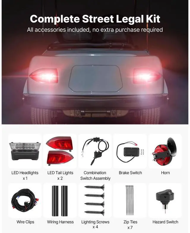 • 12V Golf Cart LED Headlight Tail Light Kit For Club Car Precedent 2004-2008