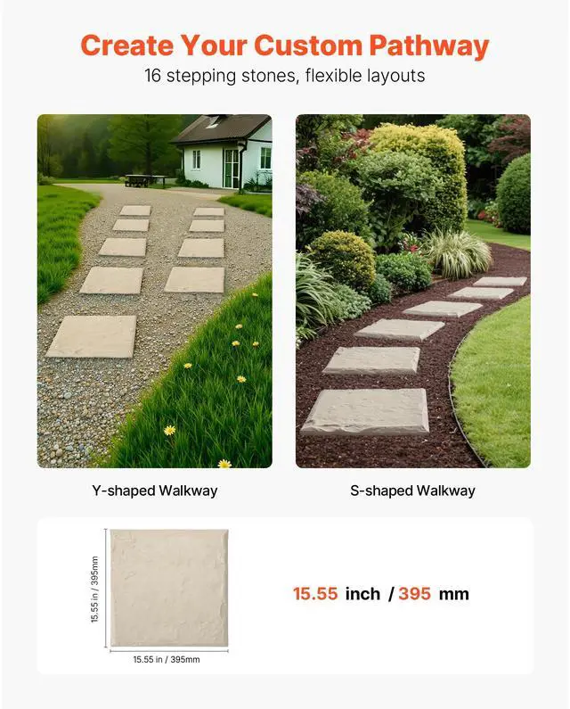 Decorative Stepping Stones with Stakes 16Pcs 15.5x15.5 in Walkway Pavers Beige