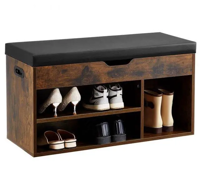 Shoe Bench with Cushion 31.7 x 12.0 x 17.5 Inch 3 Compartments Entryway Storage