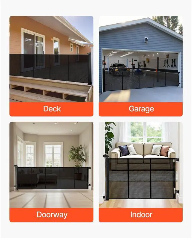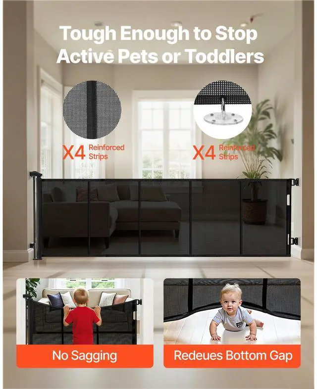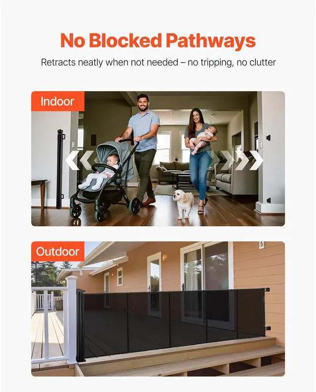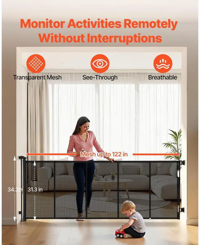 VEVOR Retractable Baby Gate Mesh Dog Gate 122 inch Wide 31.3 inch Tall Black
