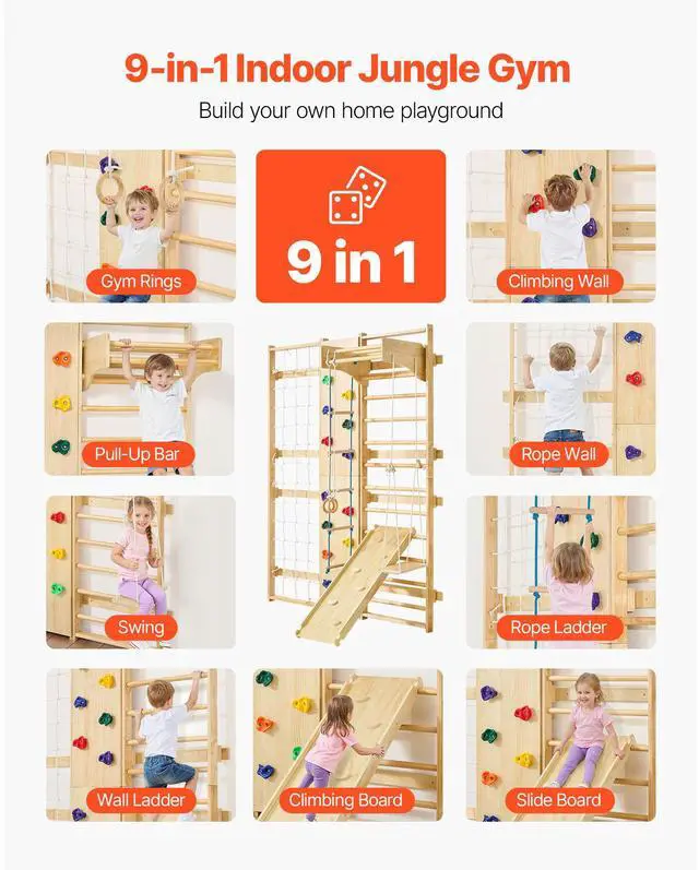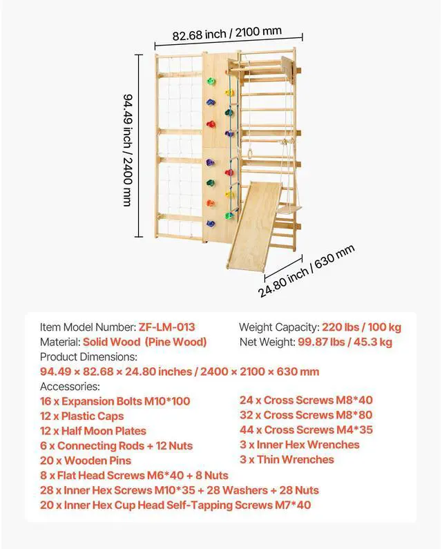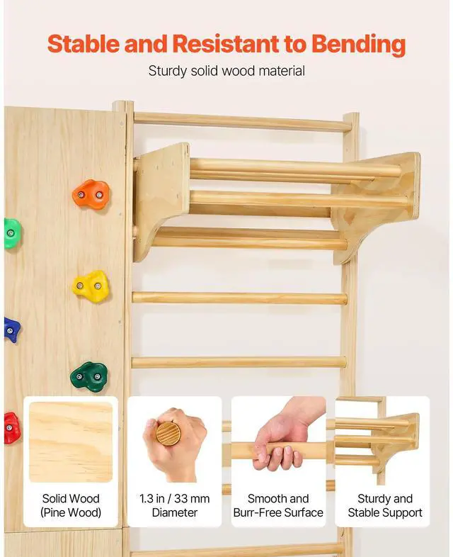 VEVOR Swedish Ladder Wall Gym 9-in-1 17-Level Solid Wood Gymnastic Stall Bars