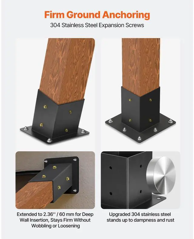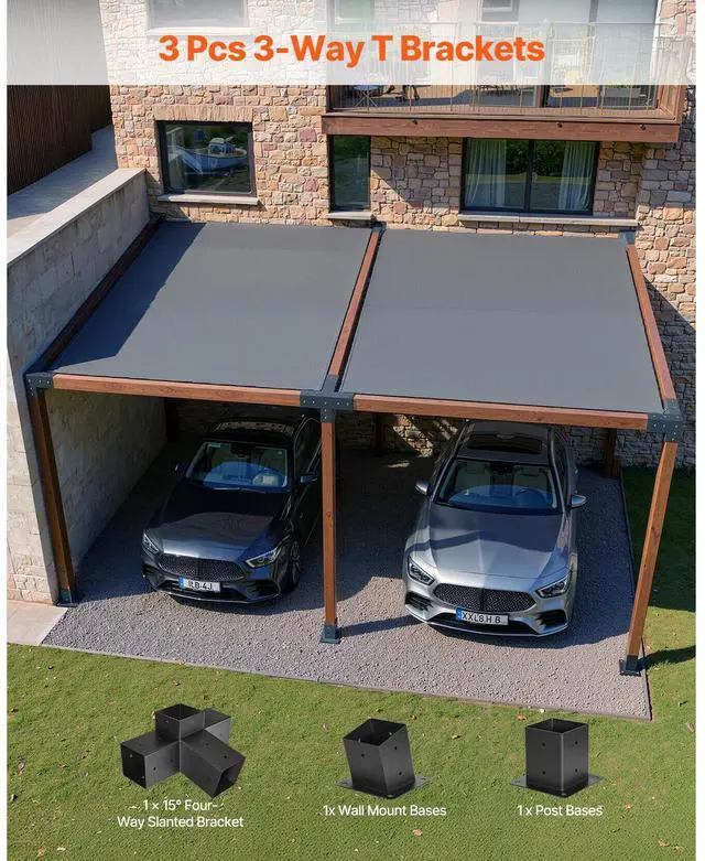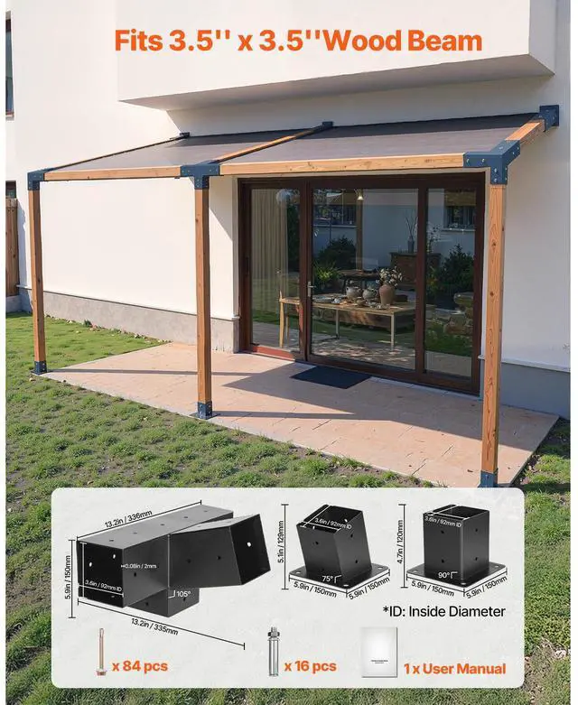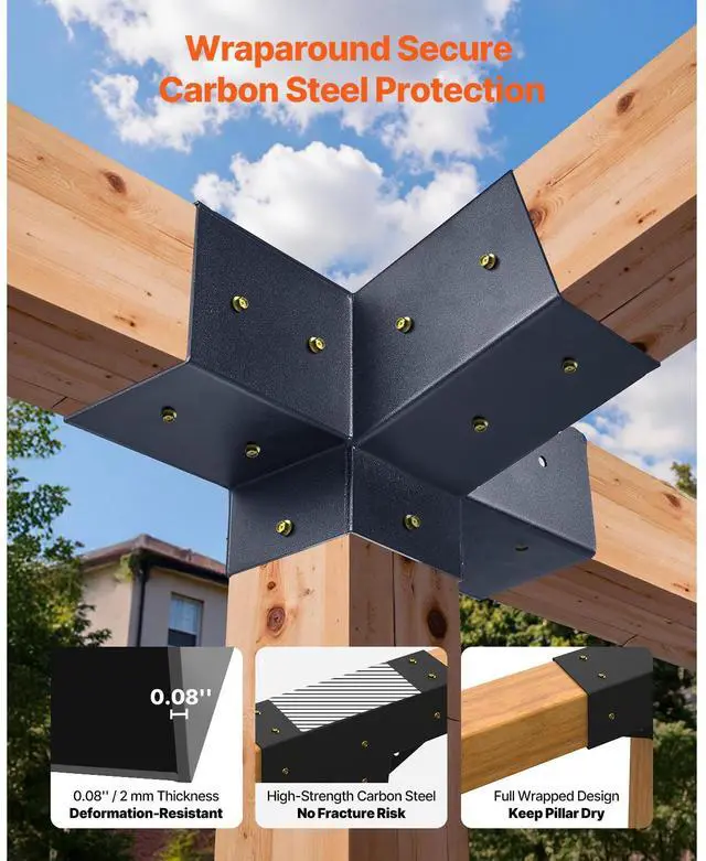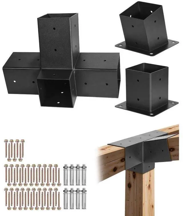 4x4 Inch Pergola Bracket Kit Inner 3.5x3.5 4-Way Slanted Brackets DIY Post
