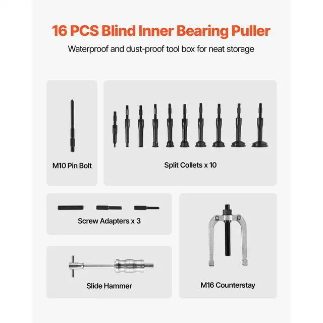 • 16pcs Blind Hole Bearing Puller Internal Extractor Remover Slide Hammer