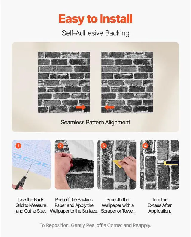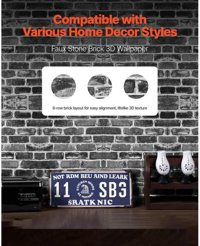 VEVOR Peel and Stick Wallpaper 17.7x393.7 in Gray Brick Waterproof for Bedroom