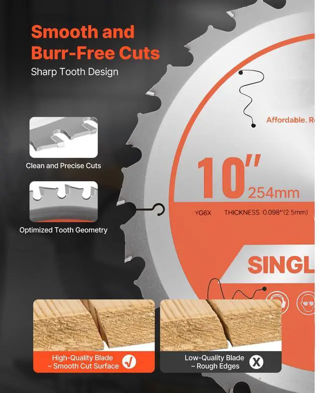 VEVOR Circular Saw Blade Wood Cutting Blade for Circular Saw 10 inch 24 Teeth