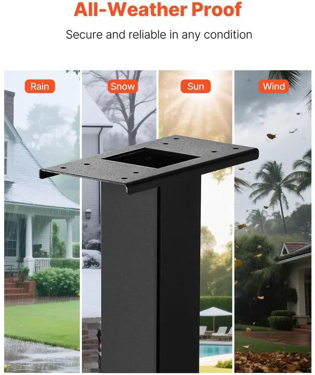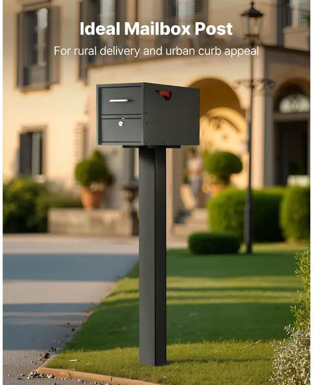 VEVOR Mailbox Post In-Ground Steel Mailbox Post Kit with Plate 43x4x4 in Black