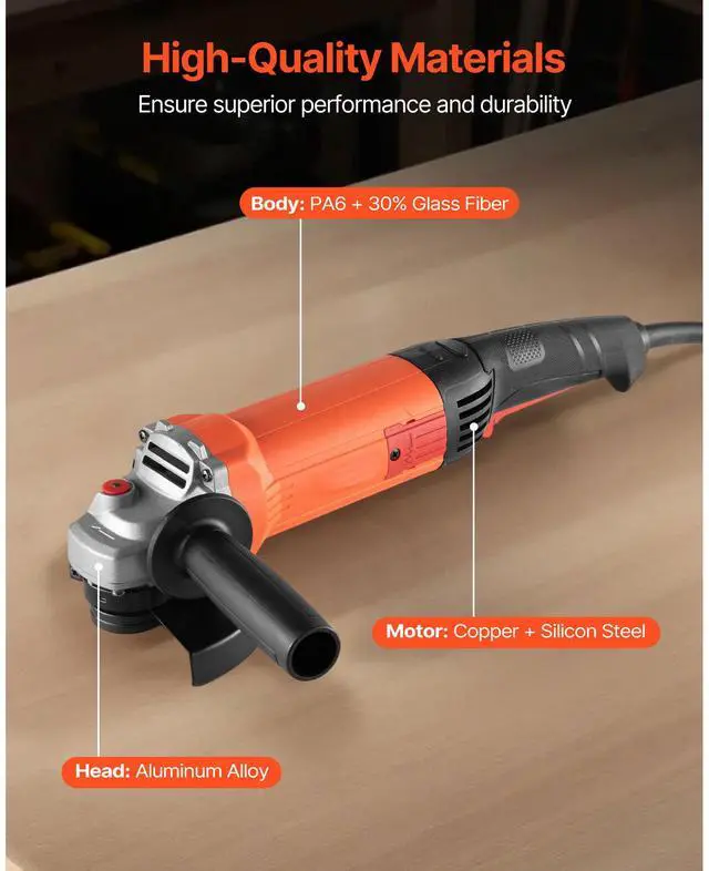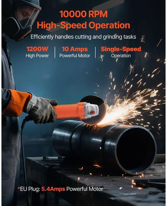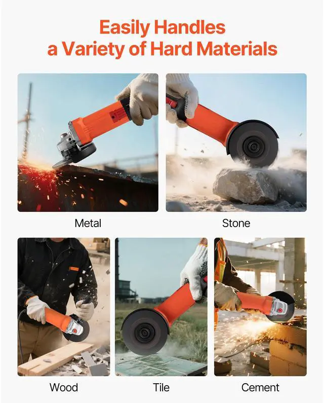 • VEVOR Angle Grinder 5" 10A Electric Grinder Power Tool 10000RPM High-Speed