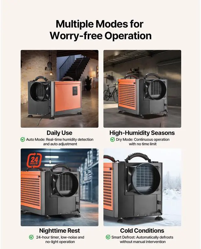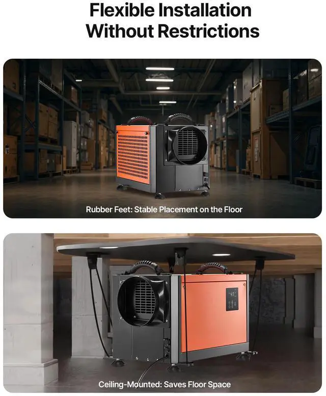 VEVOR 70 Pints Commercial Dehumidifier with Hose Auto Defrost for Crawl Space