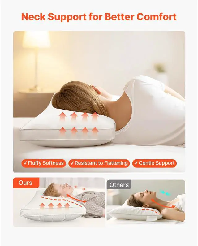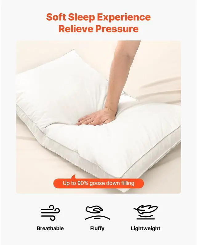 VEVOR Bed Pillows 2 Pack Queen Size Goose Down Fluffy Pillows for Sleeping