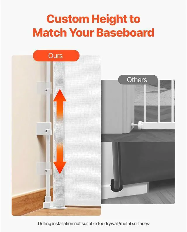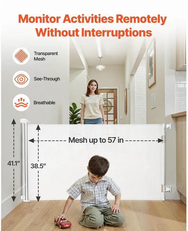 VEVOR Retractable Baby Gate Mesh Dog Gate 57 inch Wide 38.5 inch Tall White