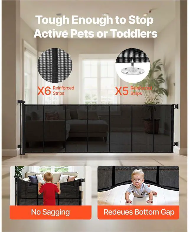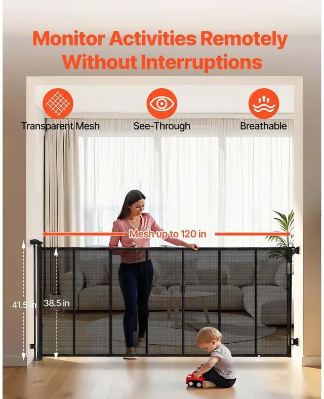 VEVOR Retractable Baby Gate Mesh Dog Gate 120 inch Wide 38.5 inch Tall Black