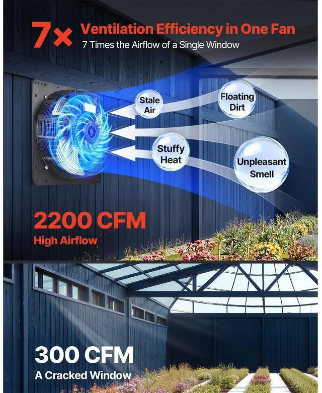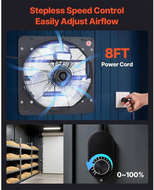 VEVOR 18 in Shutter Exhaust Fan with Speed Controller Wall Mount for Shed