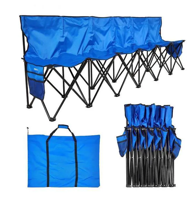 VEVOR Folding Chair Sport 6 Seat Sideline Team Bench with Sidebag Carry Bag Blue