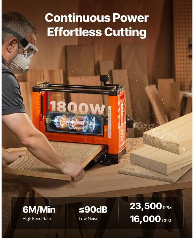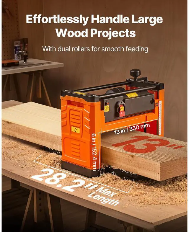 VEVOR Thickness Planer Two-Blade Power Benchtop Planer Woodworking 1800W 13 in