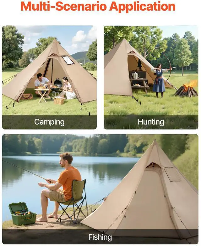 VEVOR Tipi Hot Tent with Stove Jack Waterproof Portable for 2 Persons Camping