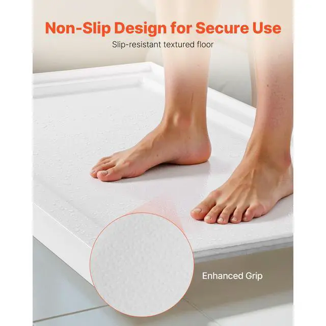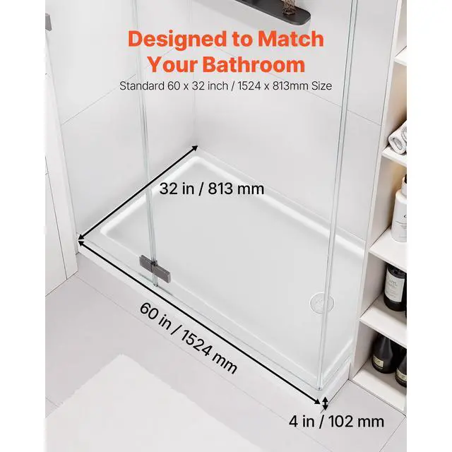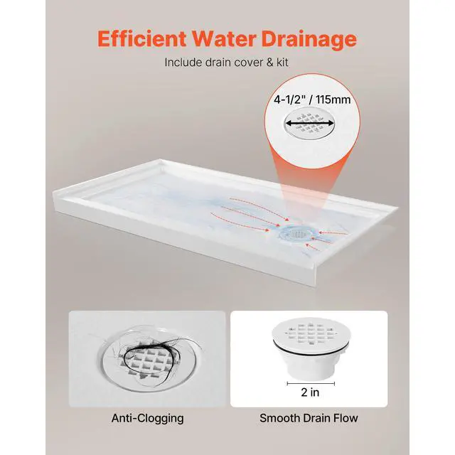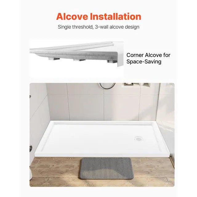 VEVOR Shower Pan 60 L x 32 W Single Threshold Shower Base Right Drain Location