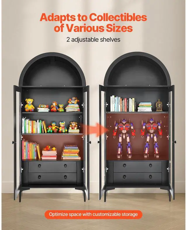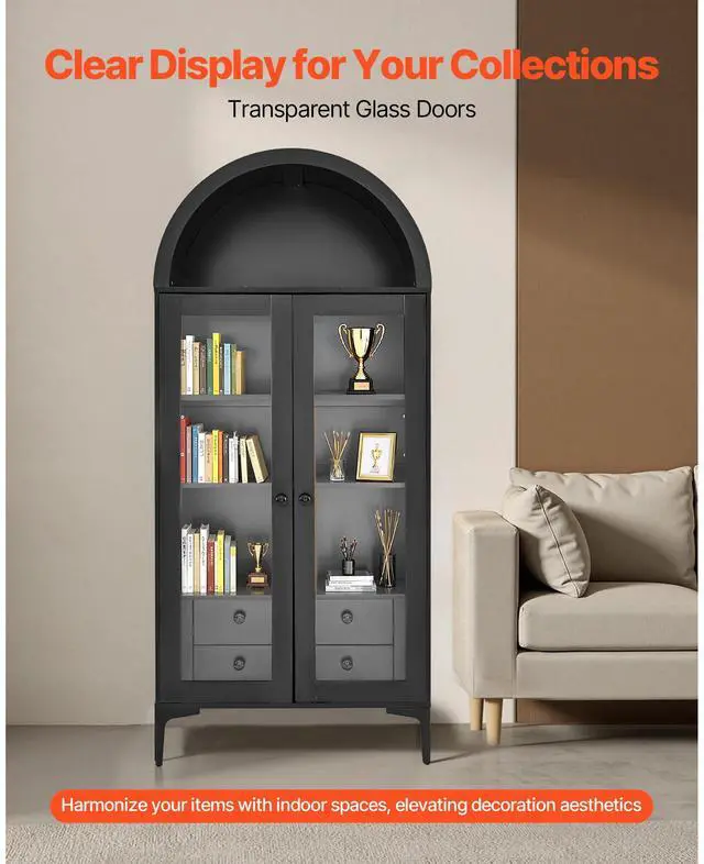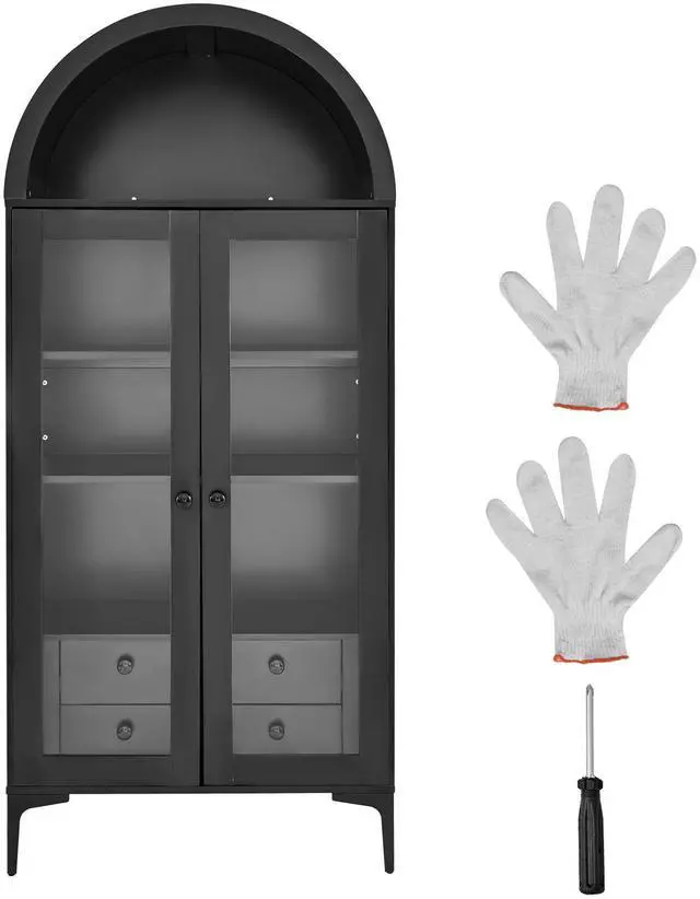 • VEVOR Arched Display Cabinet with Glass Doors 70 in Tall 4-Tier Curio Cabinet