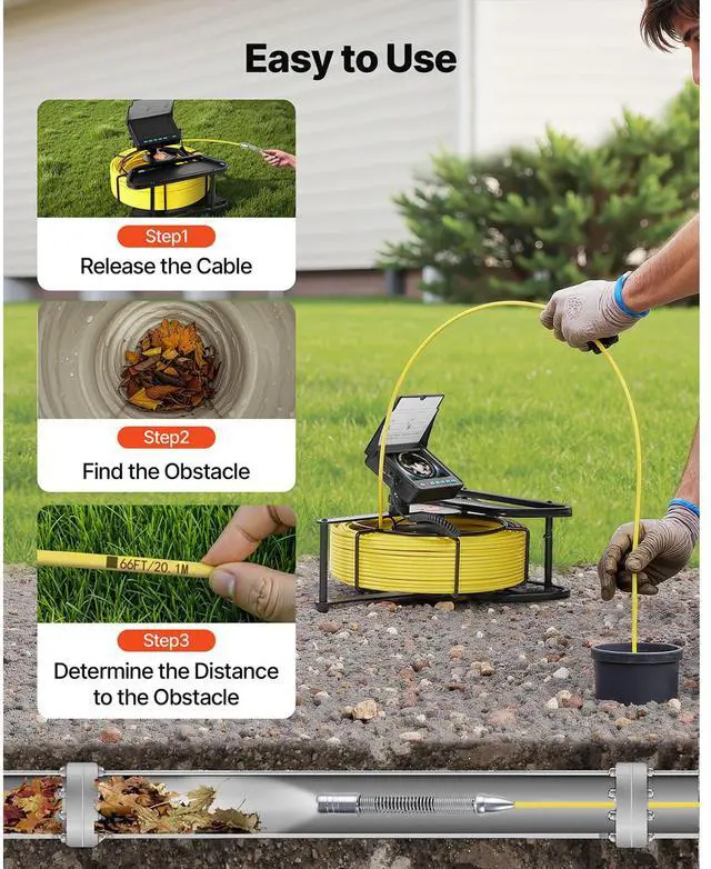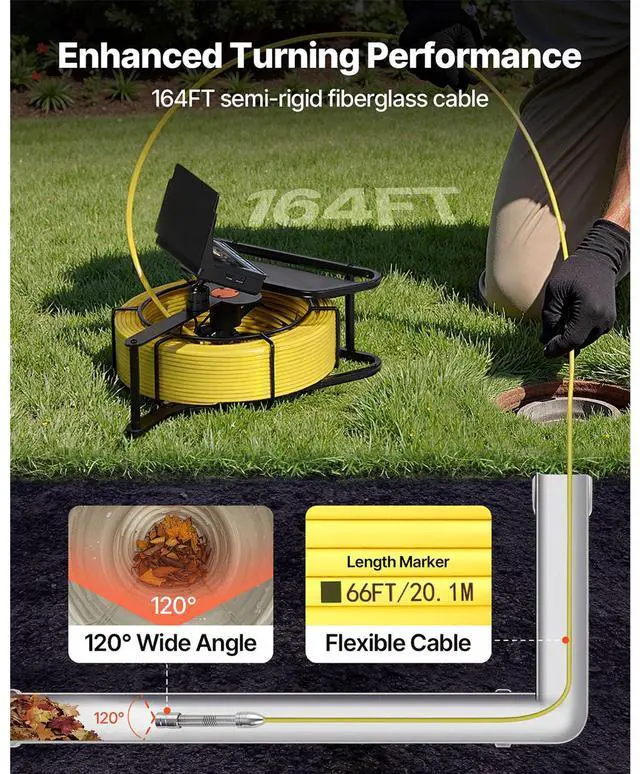 VEVOR Sewer Camera 164ft 4.3-inch Drain Inspection Camera IP68 Waterproof 6 LEDS