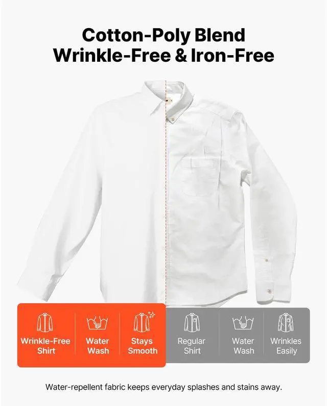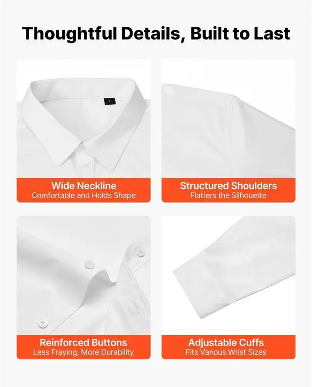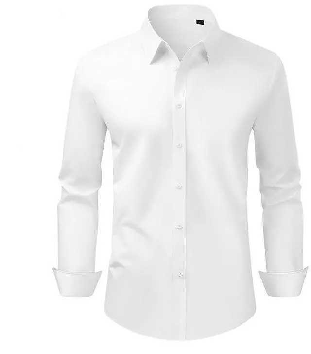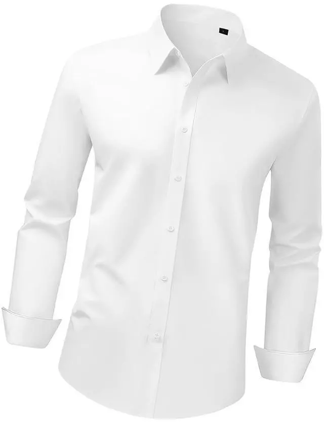 VEVOR Men's Button Up Shirt Long Sleeve Wrinkle-free Business Casual White