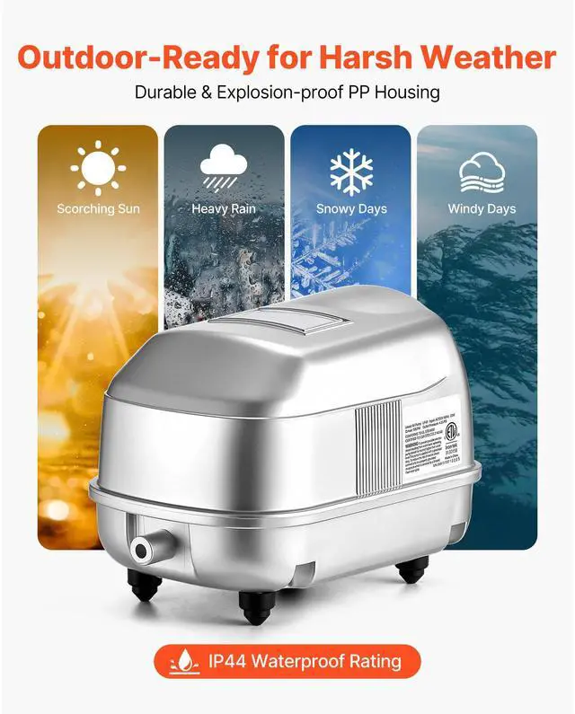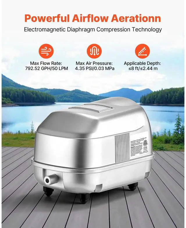 VEVOR Linear Air Pump Septic Aerator Pump 792.52 GPH Aeration for 8 ft Deep Pond
