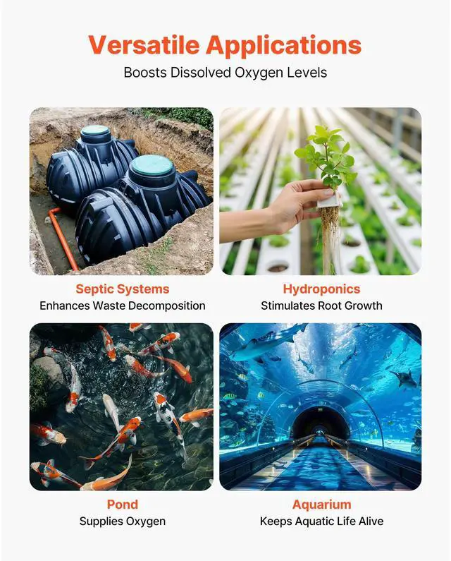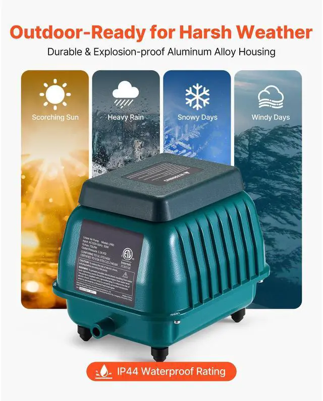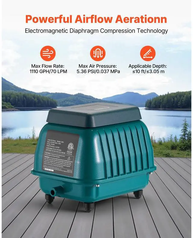 VEVOR Linear Air Pump Septic Aerator Pump 1110 GPH Aeration for 10 ft Deep Pond