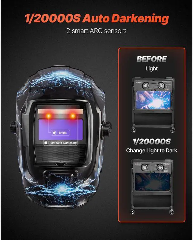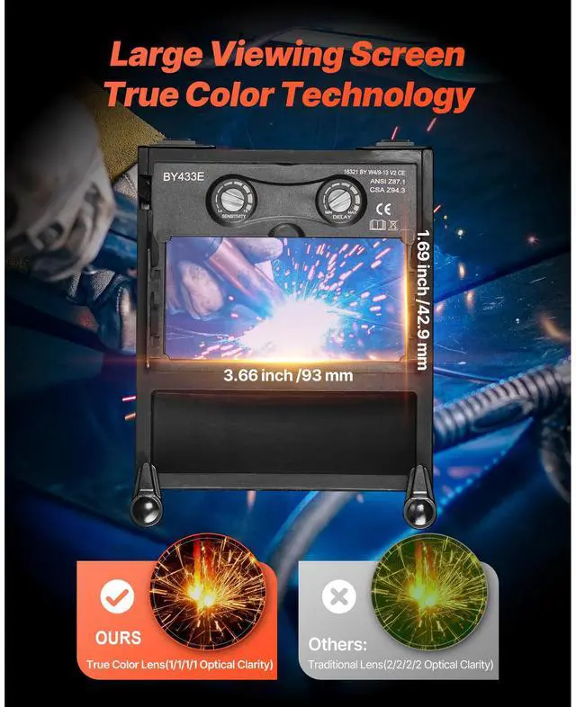VEVOR Welding Helmet Auto Darkening 3.66" x 1.69" True Color Welding Mask Hood