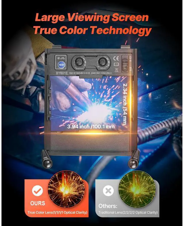 VEVOR Welding Helmet Auto Darkening 3.94" x 2.34" True Color Welding Hood Mask