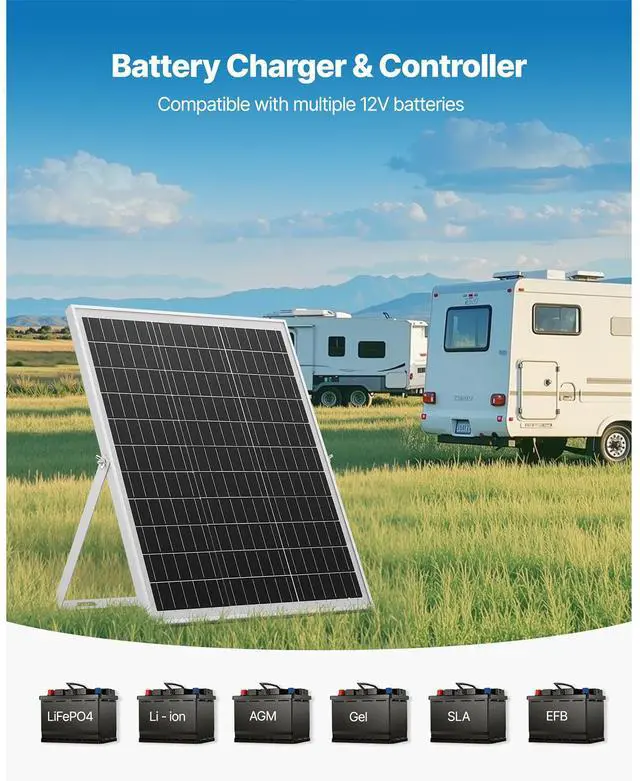 VEVOR Solar Battery Trickle Charger Maintainer 25W 12V with MPPT Controller