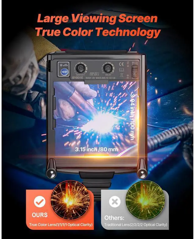 VEVOR Welding Helmet Auto Darkening 3.94" x 3.15" True Color Shade 4/5-9/9-13