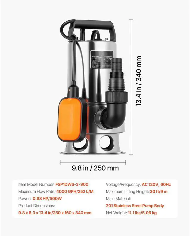Main Material: 201 Stainless Steel Pump Body