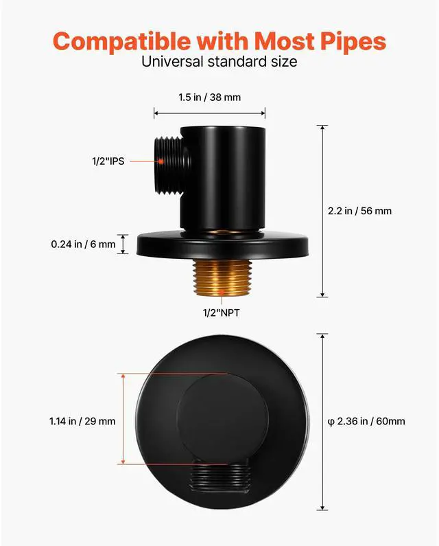 Color: Matte Black,Inner Hole Dimensions: 0.87 inch / 22 mm,Item Model Number: SZ331,Outlet Type: 1/2 IPS,Valve Body Dimensions: 2.2 x 1.5 x 1.14 inch / 56 x 38 x 29 mm,Shutter Dimensions: 2.36 x 0.24 inch / 60 x 6 mm,Net Weight: 0.3 lbs / 136.4 g,Inlet Type: 1/2 NPT,Main Material: Brass, 201 Stainless Steel