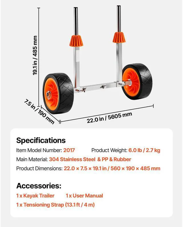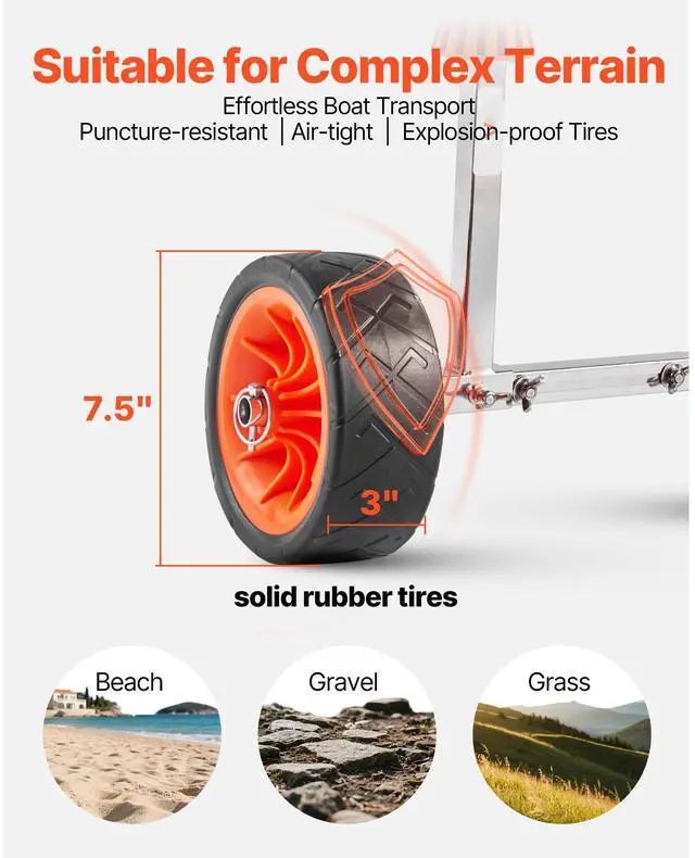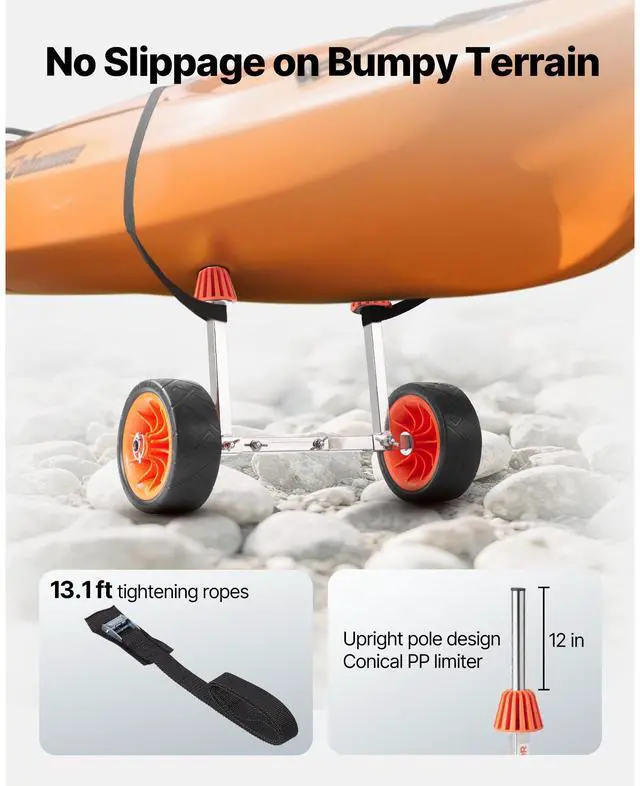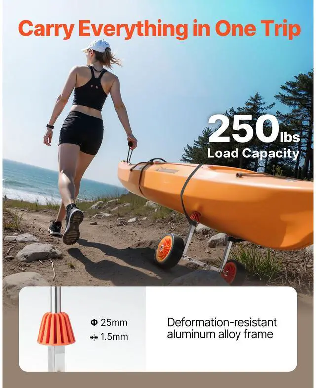 Kayak Cart 250 lbs Detachable Canoe Carrierwith 7.5 in Solid Rubber Tires