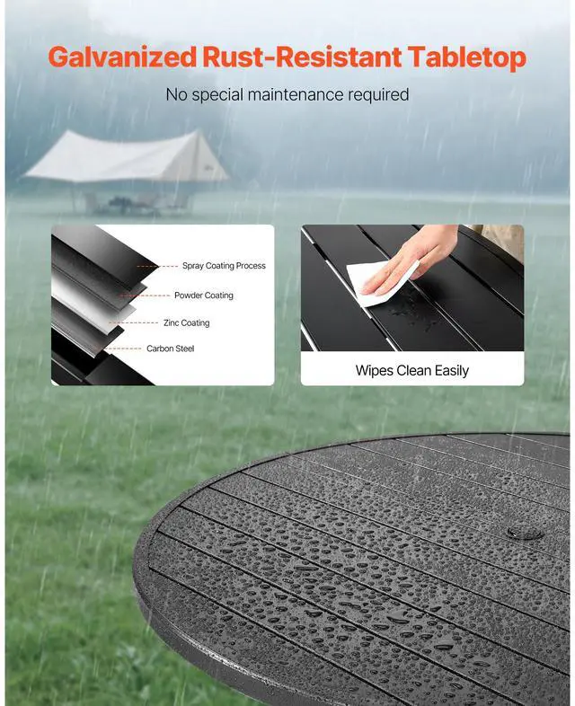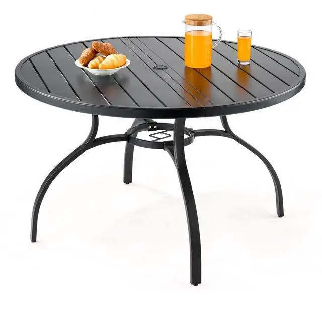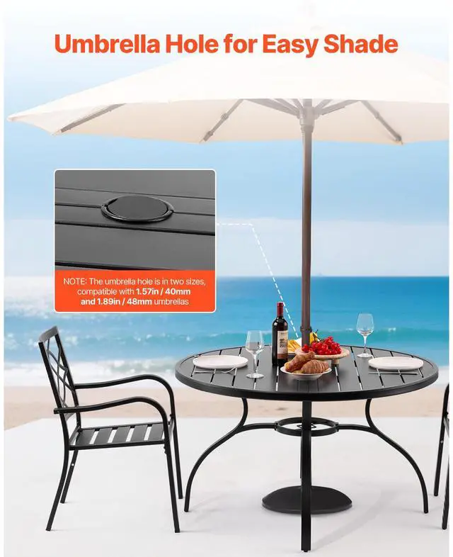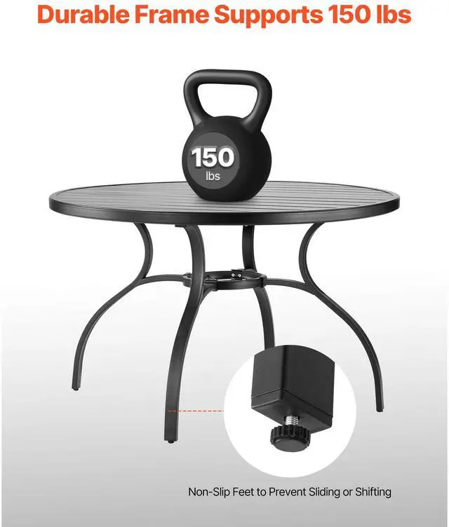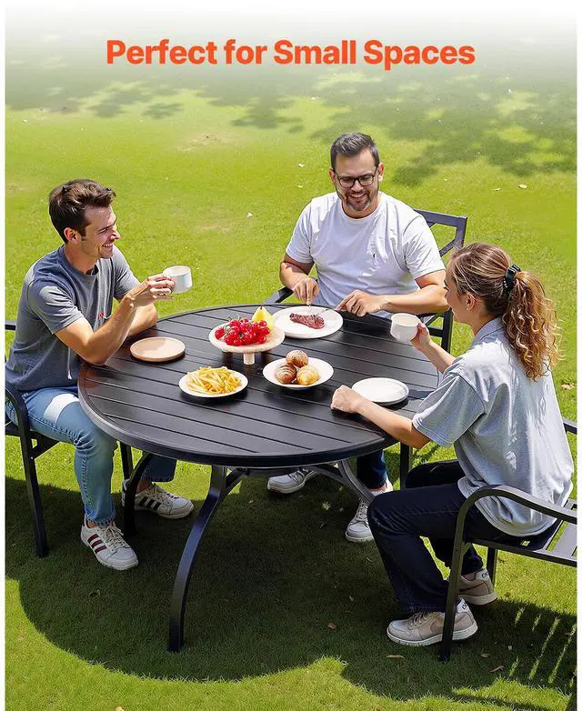 VEVOR Outdoor Patio Dining Table Round Metal Steel Slat Garden Furniture for 4
