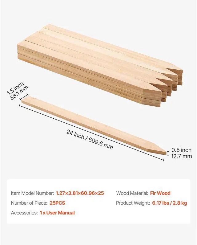 Wooden Garden Stakes 25Pcs 24x0.5x1.5 in Sturdy Fir Wood Survey Grading Stakes