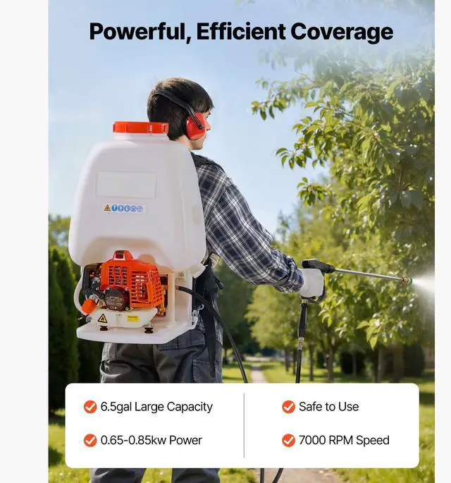 VEVOR Gas Powered Backpack Sprayer, 26.5CC 0.9HP Engine, Garden Sprayer with 6.5 Gallon Tank, Large Area Coverage, Lawn Spraying Machine with 24 in Wand & Nozzles for Efficient Gardening & Farming
