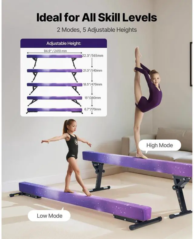 VEVOR 8FT Adjustable Gymnastic Balance Beam 6.7/15/18.5/21.3/22.3 Inch Galaxy