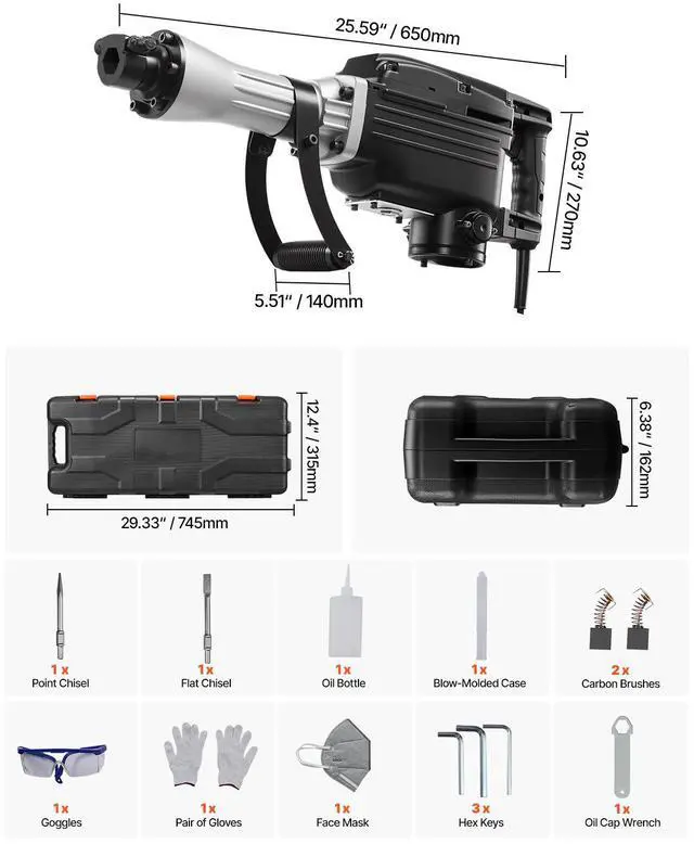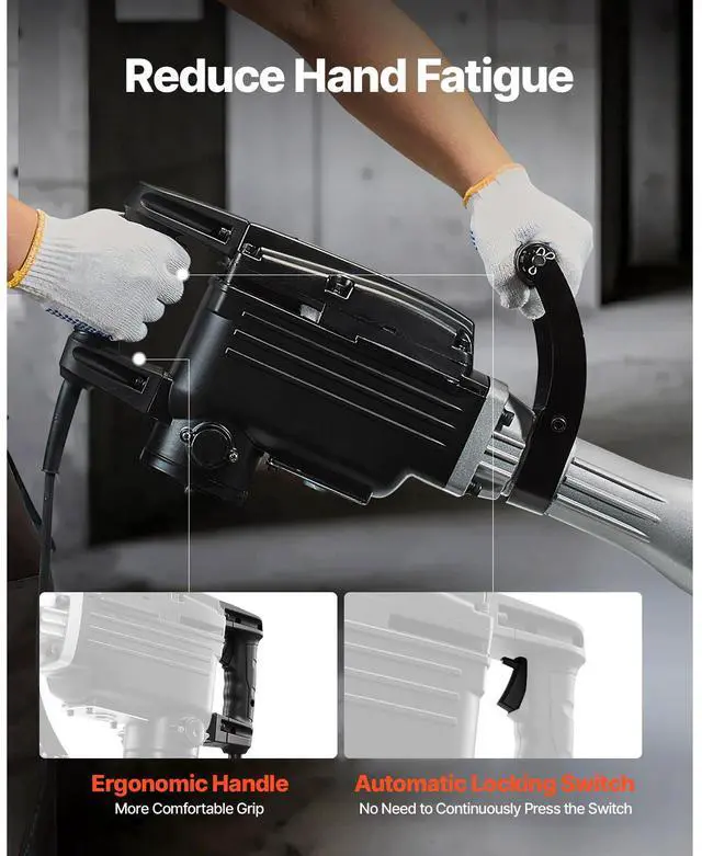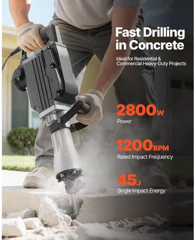 VEVOR Demolition Jack Hammer Electric Concrete Breaker 2800 W 1200 BPM 2 Chisels
