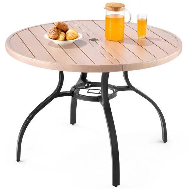 VEVOR Outdoor Patio Dining Table Round Wood-Like Metal Garden Furniture for 4