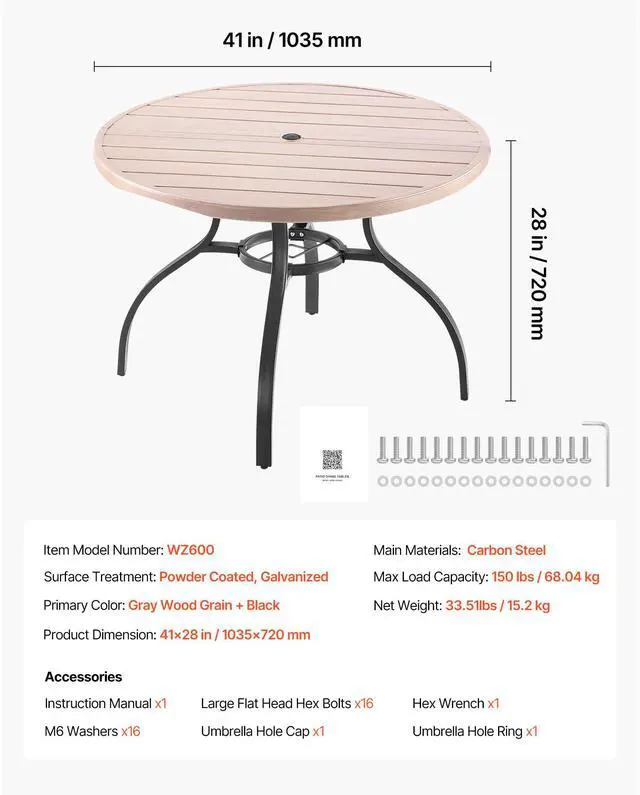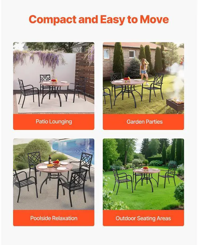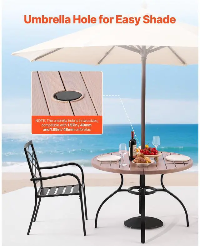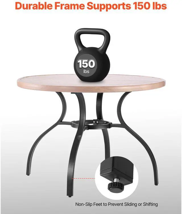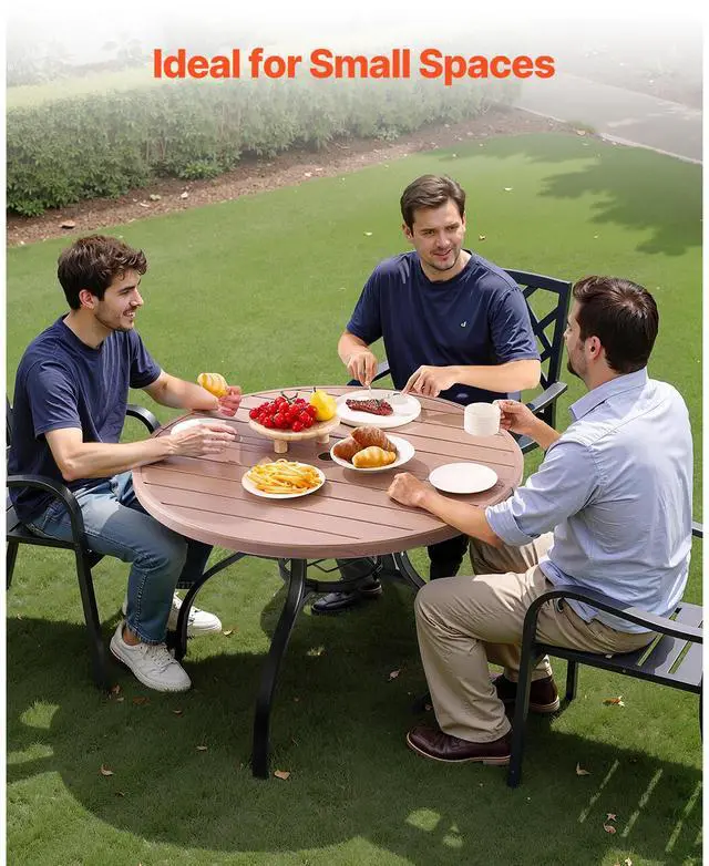 • VEVOR Outdoor Patio Dining Table Round Wood-Like Metal Garden Furniture for 4