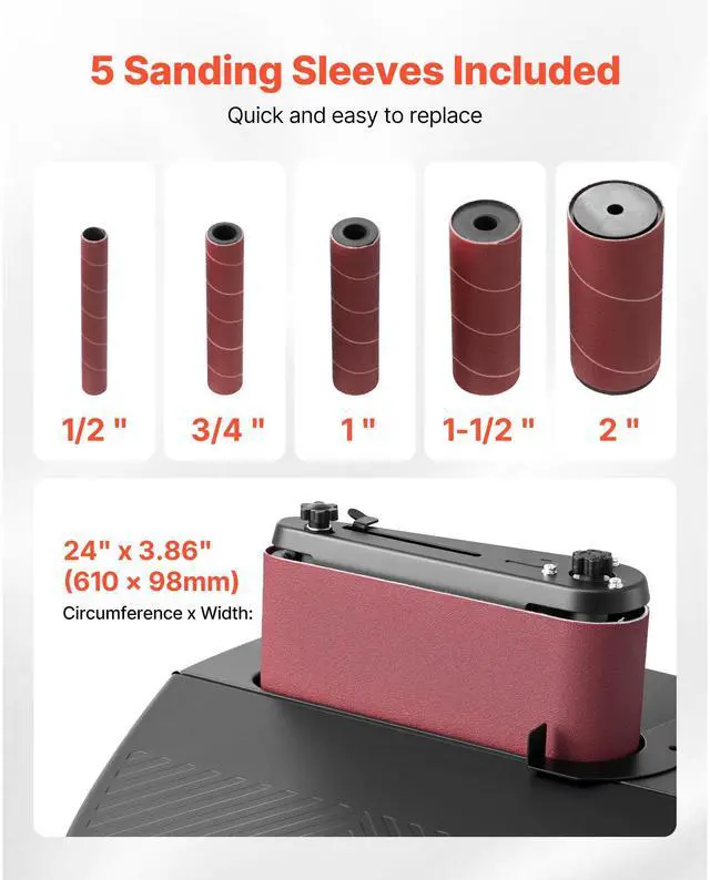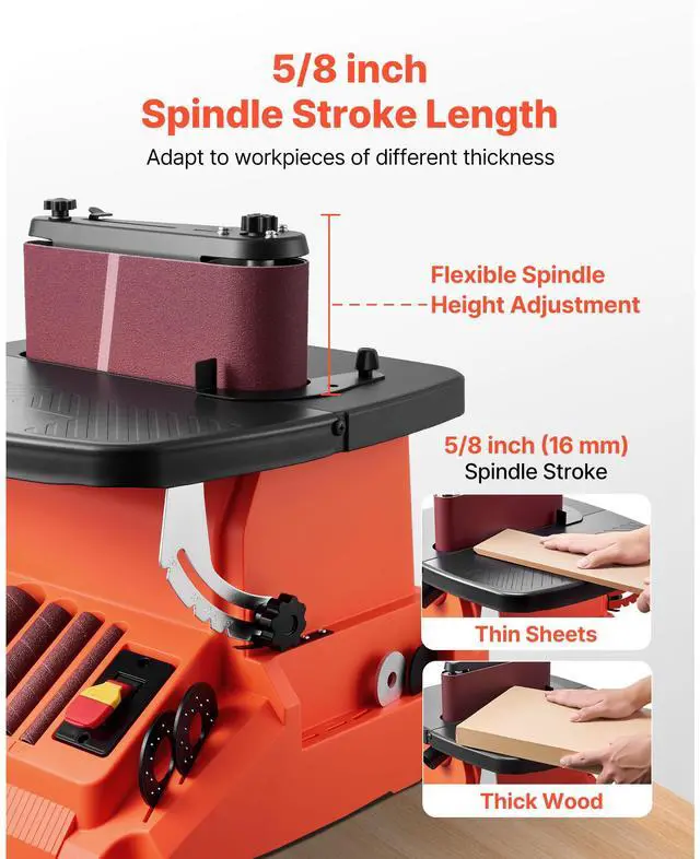 VEVOR Oscillating Belt and Spindle Sander 2400RPM Bench Spindle Sander 5 Sleeves