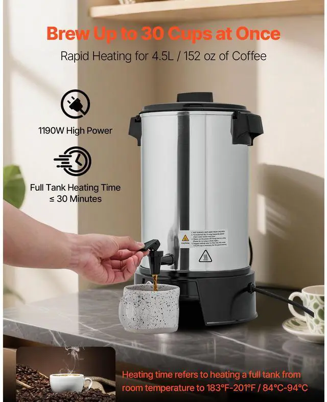Capacity: 4.5L (30 Cups) / 152 oz