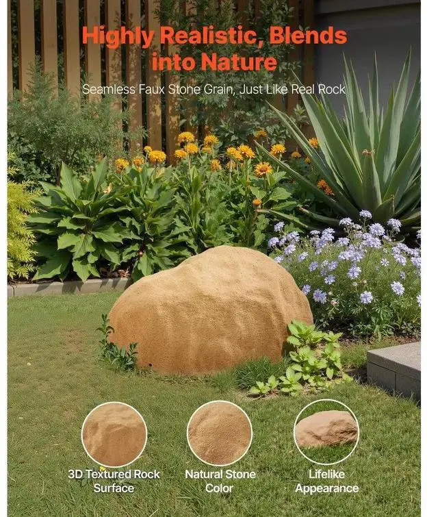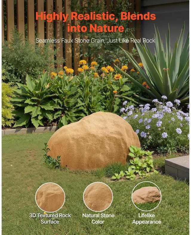 VEVOR Faux Rock Cover, Outdoor Fake Rock Well Pump Cover, Realistic Natural Texture, Lightweight & Weather-Resistant Artificial Boulder for Landscaping Garden Yard Décor, Sand Yellow, Small Size