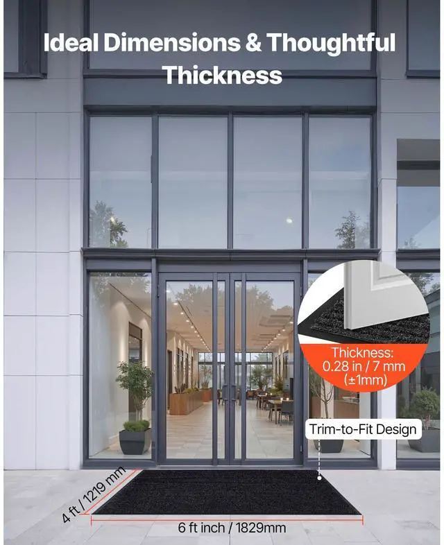VEVOR Front Door Mat, 6 x 4 ft Commercial Floor Mat for Indoor and Outdoor, Stylish Striped Industrial Carpet with PVC Backing, Heavy Duty Washable Entry Rug for Hallway, Balcony, Garage, Grey