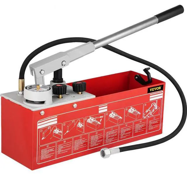 VEVOR Hydrostatic Pressure Test Pump, Test Up to 25 bar/2.5 MPa, 3.2 Gallon Tank, Hydraulic Manual Water Pressure Tester Kit with Two-Unit Gauge & R 1/2\" Connection, for Pipeline Fluid Pressure Testi