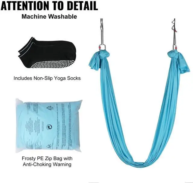 VEVOR Aerial Yoga Hammock & Swing, 5.5 Yards, Aerial Yoga Starter Kit with 100gsm Nylon Fabric, Full Rigging Hardware & Easy Set-up Guide, Antigravity Flying for All Levels Fitness Bodybuilding, Blue