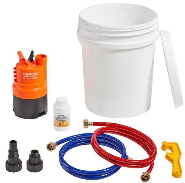 VEVOR Tankless Water Heater Flushing Kit, Includes Efficient Pump & 5 Gallon Pail & 2 Hoses & Descaling Powder, Wrench and Adapter for Quick Install Easy to Start, Water Heater Flush Kit