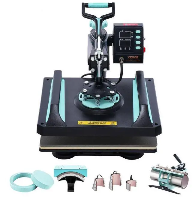 VEVOR Heat Press Machine, 12 x 15 inch, 8 in 1 Heat Transfer Machine with 30 oz Tumbler Press, 360° Swing Away Digital T-Shirt Pressing, Teflon Coating, for T-Shirts/Mugs/Hats/Plates, Black+Green